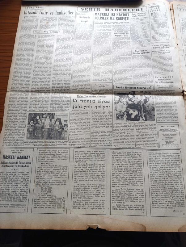 Yeni İstanbul Gazetesi - 7 Haziran 1952 - Mustafa Nermi - General Ridgway Kızıllara Sert Bir İhtarda Bulundu - Gelengül Tayfuroğlu Türkiye Güzellik Kraliçeliğine Seçildi - Albay Nuri Pamir Kore'de Şehit Oldu - Başbakan Adnan Menderes Rum Patrikhanesini Ziyaret Etti - Ürdün Kralı Tallal Yurduna Dönmek İstiyor - Maskeli Hakikat Yazan Deniz Albayı Tevfik İnci Yazı Dizisi - Hıfzıssıhha Enstitüsünün Bir Yıllık Çalışması - Yeni Maden Kanunu Meclise Veriliyor - İzmir'de Sahur Davulu Bir Mesele Oldu - Amiral Carney Karargâhının Yıldönümü - Bisiklet Yarışları - İran'da Ecnebi Okulları Yeni Talebe Alamayacak - İspanyollara Karşı Milli Takım Nasıl Tertipleniyor - Galatasaray Lille Takımıyla Oynuyor - Amerika'da Türk Delikanlıları - İstanbul'un En Eski İşyeri Balkapanı - Yeni Marlene Dietrich Kim - Rita Hayworth Sürekli Eş Değiştiriyor - Almanya Ve Bira - Kıbrıs Türkleri Arasında Yazan Fikret Adil Yazı Dizisi - İstanbul'un Büyük Bir Derdi Telefon - Demag Cereskalleri - BEA İngiliz Havayolları, Habib Edib Törehan tarafından kaleme alınmıştır. Yeni İstanbul Gazetesi - 7 Haziran 1952 - Mustafa Nermi - General Ridgway Kızıllara Sert Bir İhtarda Bulundu - Gelengül Tayfuroğlu Türkiye Güzellik Kraliçeliğine Seçildi - Albay Nuri Pamir Kore'de Şehit Oldu - Başbakan Adnan Menderes Rum Patrikhanesini Ziyaret Etti - Ürdün Kralı Tallal Yurduna Dönmek İstiyor - Maskeli Hakikat Yazan Deniz Albayı Tevfik İnci Yazı Dizisi - Hıfzıssıhha Enstitüsünün Bir Yıllık Çalışması - Yeni Maden Kanunu Meclise Veriliyor - İzmir'de Sahur Davulu Bir Mesele Oldu - Amiral Carney Karargâhının Yıldönümü - Bisiklet Yarışları - İran'da Ecnebi Okulları Yeni Talebe Alamayacak - İspanyollara Karşı Milli Takım Nasıl Tertipleniyor - Galatasaray Lille Takımıyla Oynuyor - Amerika'da Türk Delikanlıları - İstanbul'un En Eski İşyeri Balkapanı - Yeni Marlene Dietrich Kim - Rita Hayworth Sürekli Eş Değiştiriyor - Almanya Ve Bira - Kıbrıs Türkleri Arasında Yazan Fikret Adil Yazı Dizisi - İstanbul'un Büyük Bir Derdi Telefon - Demag Cereskalleri - BEA İngiliz Havayolları adlı eser Türkçe dilindedir.