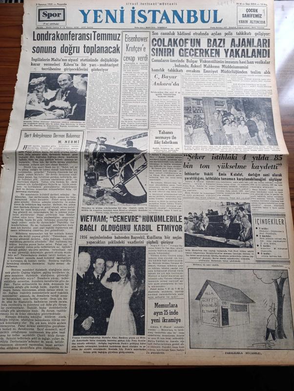 Yeni İstanbul Gazetesi - 7 Temmuz 1955 - Mustafa Nermi - Londra Konferansı Temmuz Sonuna Doğru Toplanacak - Amerikan Başkanı Eisenhower Kruşcef'e Cevap Verdi - Çolakof'un Bazı Ajanları Sınırı Geçerken Yakalandı - Vietnam Cenevre Hükümleriyle Bağlı Olduğunu Kabul Etmiyor - Yabancı Sermaye İle İlaç Fabrikası - Gülhane Parkında Seçilen Ses Kral Ve Kraliçesi İzmir Fuarına Davet Edildi - Emin Kalafat'ın Ankara Radyosundaki Konuşması - Ankara İstanbul İzmir Radyosu Programı - Memleket Ve Dünya Borsa Ve Piyasaları - Tövbe Eylerdi Şaraba Şüphesiz Şairi Görseydi Bekri Mustafa - Rus Çarı 2. Petro'nun 3. Sultan Ahmed'e Mektubu - Pompei Harabelerinde Yapılan Son Kazılar - Fenerbahçe Kalecisi Selahattin Ünlü Mukavelesini Yeniledi - İstanbul Üniversitesi Ankara'ya Yenildi - 1 Temmuz 1955'e Kadar Dünya Şeref Listesi - Fenerbahçe İkinci Reisi Osman Kavrakoğlu - Çapamarka - Gripin - Elektroimpex Otomatik Ve Manyetolu Telefon adlı eser, Kitap > Süreli Yayınlar > Gazeteler > Türkiye > Genel > Günlük kategorisinde İkinci El olarak satıştadır.