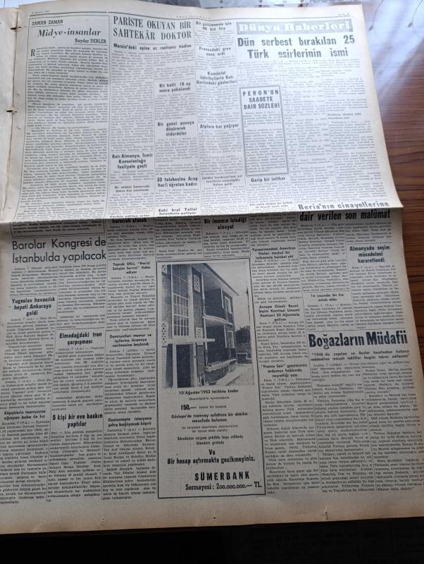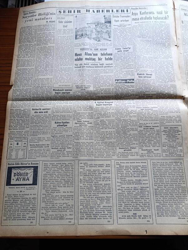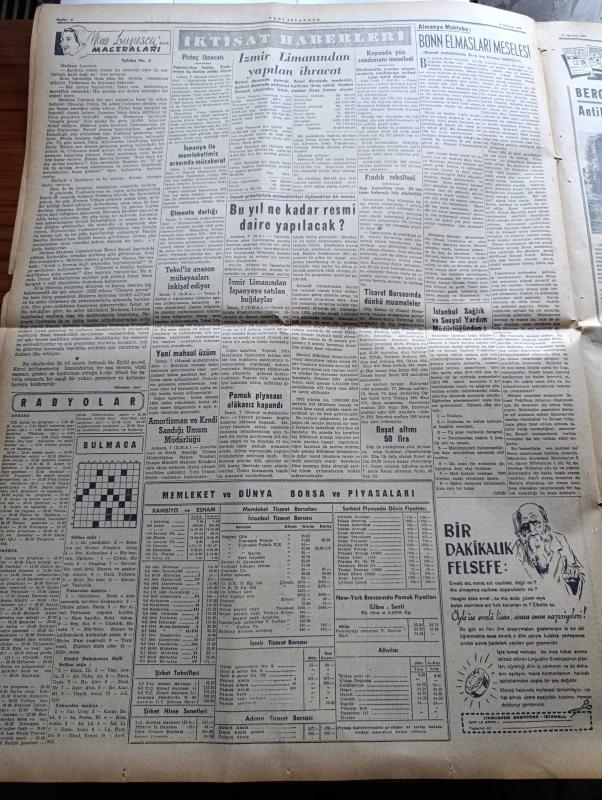 Yeni İstanbul Gazetesi - 8 Ağustos 1953 - Namık Zeki Aral - Eisenhower'in Türkiye'ye Dair Mühim Bir Demeci - Bir Adana Gazetesi 1933 Yılında 31 Şaki'nin Sebepsiz Kurşuna Dizildiğini Yazdı - İngiltere'ye Askeri Türk Borçları Tasfiye Edildi - Adnan Menderes İzmir'de Yamanlar Kampı'nı Gezdi - Demokrat Parti Ve Hürriyet Partisi Organları Arasında Tartışma - Amerika Türkiye'den Afyon Ve Benzeri Uyuşturucu Madde İhracınının Yasaklanmasını İstiyor - Döner Ayna Yazan Halide Edip Adıvar Yazı Dizisi - Mustafa Nermi - Yeşilköy Havaalanı'nın Telefonu Islaha Muhtaç Bir Halde - Midye İnsanlar - Kore'de Dün Serbest Bırakılan 25 Türk Esirlerin İsmi - Eski Sovyet Gizli Polis Teşkilatı Reisi Beria'nın Cinayetlerine Dair Verilen Son Malumat - Bonn Elmasları Meselesi - Ankara İstanbul İzmir Radyosu Programı - Bergama Antik Şehri - Anadolu Abideleri - Aziz Ogan - Yeni İstanbul'un Hikayeleri Kestane Fidanları Yazan Mehmet Davaz - Müzikhol Nasıl Doğdu Nasıl Gelişti - Adım Adım Türkiye Yazan Hikmet Saim adlı eser, Kitap > Süreli Yayınlar > Gazeteler > Türkiye > Genel > Günlük kategorisinde İkinci El olarak satıştadır.