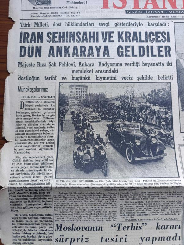Yeni İstanbul Gazetesi - Turkish Newspaper - 16 Mayıs 1956 - münakaşalarımız yazan Habib Edib Törehan Başmakale - İran Şehinşahı ve kraliçesi Dün Ankara'ya geldiler fotoğraf - İran Şahı Ve Kraliçe Süreyya'yı Esenboğa havaalanında Celal Bayar Adnan Menderes ve Refik Koraltan karşıladı fotoğraf - milli korunma tasarısı komisyona iade edilecek - iki İngiliz güzeli İris Walker Ve İlena Nelson fotoğraf - Orhan Köprülü istifasını partiye bildirmemiş - azaplı gezinti yazan Refik Halit Karay - Muhtar yazan Fikret Arıt Yazı Dizisi - yanık sigara bir sinemayı yakıyordu - denizcilik Bankası gemi almayacak - Bahar bayramı hazırlıkları ilerliyor - 19 Mayıs Spor ve Gençlik Bayramı programı hazırlandı - Kasım Gülek'in Malatya konuşması - Chevrolet imalatını kısıyor - İngiltere yeni bir tasfiyehane kuruyor - kaderin oyunu yazan Sümer Can - akciğer kanserini belli eden cihaz - Ankara İstanbul Radyosu Programı - karaburun'dan röportajlar VI yazan Metin Doğanalp - atletizm bayramına iştirak edecekler adlı eser, Kitap > Süreli Yayınlar > Gazeteler > Türkiye > Genel > Günlük kategorisinde İkinci El olarak satıştadır.