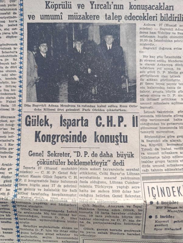 Yeni İstanbul Gazetesi - Turkish Newspaper - 28 Kasım 1955 - soysuzlaşma yazan Habib Edip Törehan Başmakale - Amerikan Sovyet iktisadi rekabeti arttı - Rus tehdidi ve Tahran - Rus liderleri Nikita Kruşçef Ve Mareşal Bulganin yeni delhide Mahatma Gandhi'nin küllerinin bulunduğu Samadiyi ziyaretten önce ayakkabıları çıkarttılar Fotoğrafı - Başvekil Adnan Menderes tarafından kabul edilen Rum Ortodoks kilisesi ileri gelenleri Park otel'den çıkarlarken Fotoğrafı - Adnan Menderes otomobille Dün Ankara'ya döndü - elektrikli tren seferleri yine başlayamıyor - küçük yaşımdan beri çocuk felcine müptela olan 14 yaşındaki İtalyan ressam Bruno Carati Fotoğrafı - yeni İstanbul'un hikayesi yolculuk yazan Mehmet Davaz Yazı Dizisi - pazartesi konuşmaları yazan Halide Edip Adıvar - Filarmoni Derneği On Yaşında - 1954 dünya güzeli Jacqueline Beer evlendi - Kunuri Savaşı'nın 5. Yıldönümü - deliorman yazan General Hamdi Gürsoy Yazı Dizisi - Anadolu abideleri yazan Aziz Ogan - Beşiktaş Vefa berabere kaldı adlı eser, Kitap > Süreli Yayınlar > Gazeteler > Türkiye > Genel > Günlük kategorisinde İkinci El olarak satıştadır.