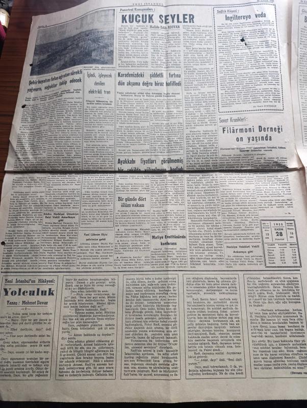 Yeni İstanbul Gazetesi - Turkish Newspaper - 28 Kasım 1955 - soysuzlaşma yazan Habib Edip Törehan Başmakale - Amerikan Sovyet iktisadi rekabeti arttı - Rus tehdidi ve Tahran - Rus liderleri Nikita Kruşçef Ve Mareşal Bulganin yeni delhide Mahatma Gandhi'nin küllerinin bulunduğu Samadiyi ziyaretten önce ayakkabıları çıkarttılar Fotoğrafı - Başvekil Adnan Menderes tarafından kabul edilen Rum Ortodoks kilisesi ileri gelenleri Park otel'den çıkarlarken Fotoğrafı - Adnan Menderes otomobille Dün Ankara'ya döndü - elektrikli tren seferleri yine başlayamıyor - küçük yaşımdan beri çocuk felcine müptela olan 14 yaşındaki İtalyan ressam Bruno Carati Fotoğrafı - yeni İstanbul'un hikayesi yolculuk yazan Mehmet Davaz Yazı Dizisi - pazartesi konuşmaları yazan Halide Edip Adıvar - Filarmoni Derneği On Yaşında - 1954 dünya güzeli Jacqueline Beer evlendi - Kunuri Savaşı'nın 5. Yıldönümü - deliorman yazan General Hamdi Gürsoy Yazı Dizisi - Anadolu abideleri yazan Aziz Ogan - Beşiktaş Vefa berabere kaldı, Habib Edib Törehan tarafından kaleme alınmıştır. Yeni İstanbul Gazetesi - Turkish Newspaper - 28 Kasım 1955 - soysuzlaşma yazan Habib Edip Törehan Başmakale - Amerikan Sovyet iktisadi rekabeti arttı - Rus tehdidi ve Tahran - Rus liderleri Nikita Kruşçef Ve Mareşal Bulganin yeni delhide Mahatma Gandhi'nin küllerinin bulunduğu Samadiyi ziyaretten önce ayakkabıları çıkarttılar Fotoğrafı - Başvekil Adnan Menderes tarafından kabul edilen Rum Ortodoks kilisesi ileri gelenleri Park otel'den çıkarlarken Fotoğrafı - Adnan Menderes otomobille Dün Ankara'ya döndü - elektrikli tren seferleri yine başlayamıyor - küçük yaşımdan beri çocuk felcine müptela olan 14 yaşındaki İtalyan ressam Bruno Carati Fotoğrafı - yeni İstanbul'un hikayesi yolculuk yazan Mehmet Davaz Yazı Dizisi - pazartesi konuşmaları yazan Halide Edip Adıvar - Filarmoni Derneği On Yaşında - 1954 dünya güzeli Jacqueline Beer evlendi - Kunuri Savaşı'nın 5. Yıldönümü - deliorman yazan General Hamdi Gürsoy Yazı Dizisi - Anadolu abideleri yazan Aziz Ogan - Beşiktaş Vefa berabere kaldı adlı eser Türkçe dilindedir.