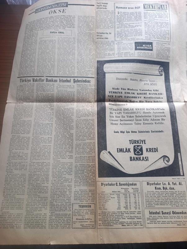 Yeni İstanbul Gazetesi - Turkish Newspaper - 29 Mart 1963 - buhranı körükleyen yalancılık yazan Gökhan Evliyaoğlu Başmakale - hükümet Dün vatandaşları ve bütün teşekkülleri olayları önlemeye çağırdı - Osman Bölükbaşı Başbakan İsmet İnönü ile konuşarak hükümetin mesuliyetini hatırlattı - Adalet Partisinde grubunda da sert tartışmalar oldu - Adalet Partisi merkez genel idare kurulundan 12 kişi istifa etti - Celal Bayar tekrar tevkif edildi - Kızıl bizim radyo yeni İstanbul ortadan kaldırılmalıdır diyor - Bursa'da 200 talebenin yürüyüşünü 20.000 kişi temaşa etti - TİP'liler Dün Toprak dergisine tecavüze kalktılar - Celal Bayar öldüreceğim diyen Sıtkı Ulay hakkında savcılık tahkikat açtı - TİP'li gençler Aydınlar kulübünü de tahrip etti - günün yazısı ökse yazan Safiye Erol - dolapdere'de 2 ihtiyar açlıktan öldü - İtalya ve dünya futbolunun bir numaralı otoritesi Vittorio Pozzo maçı değil İstanbul'u beğendim dedi - Alfredo Tonilo Can Bartu Metin oktay'dan çok büyük bir futbol yıldızıdır adlı eser, Kitap > Süreli Yayınlar > Gazeteler > Türkiye > Genel > Günlük kategorisinde İkinci El olarak satıştadır.