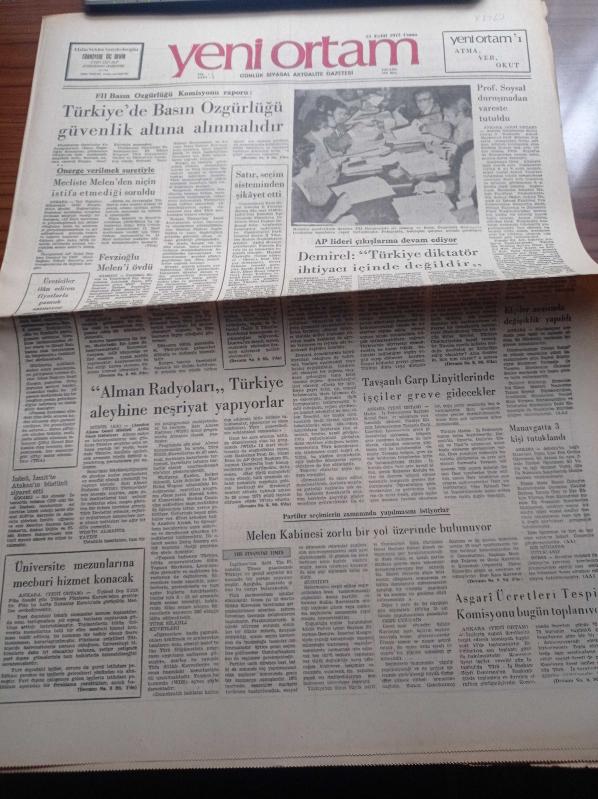 Yeni Ortam Gazetesi - 15 Eylül 1972 - Kemal Bisalman - Oya Baydar - Yaşar Kemal Denizler Kurudu Yazı Dizisi - Aziz Nesin - Selim İleri Senarist Oldu - Bekir Yıldız - Kerim Korcan - Erkan Yücel - Gülriz Sururi Evet Evet Oyununda - Ceyhun Atuf Kansu - Süleyman Demirel Türkiye Diktatör İhtiyacı İçinde Değildir - Turhan Feyzioğlu Ferit Melen'i Övdü - Profesör Mümtaz Sosyal Duruşmadan Vareste Tutuldu - Vietnam - Nixon - Henry Kissinger - Kırım Türkleri Yurtlarına Dönmek İçin BM'e Başvurdu adlı eser Türkçe dilindedir.