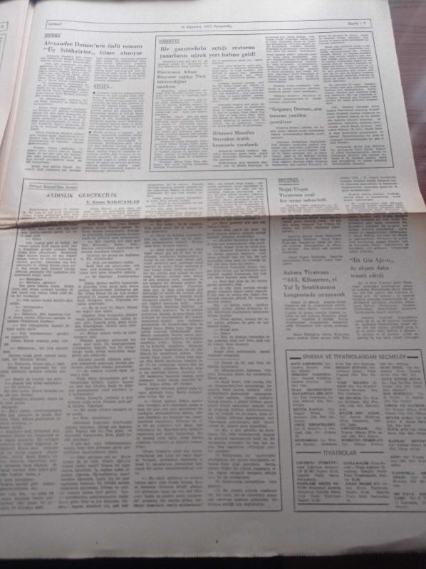 Yeni Ortam Gazetesi - 16 Ağustos 1973 - İlhami Soysal - Sevgi Soysal - Kemal Bisalman - Mustafa Ekmekçi - Tektaş Ağaoğlu - Oya Baydar - İsmail Necati - Y. Kenan Karacanlar - Ekrem Gökçe - Muzaffer Buyrukçu Trafik Kazasında Yaralandı - Nejat Uygur Tiyatrosu - Üç Silahşörler - Adalet Partisi Yöneticileri Faik Türün İle İlgili Açıklama Yapmıyor - Hacı Ali Demirel Almanya'da Özel Okul Açmaya Hazırlanıyor - THKP Davasında Sorgular Yapılıyor - Profesör Sadun Aren'in Sağlık Durumu Düzeliyor - Bülent Ecevit adlı eser Türkçe dilindedir.