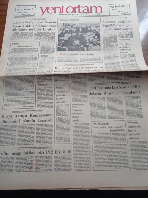 Yeni Ortam Gazetesi - 23 Ocak 1973 - Nevzat Üstün - Kemal Sülker - Emil Galip Sandalcı - Hasan İzzettin Dinamo - Murat Can - Tiyatro Ve Pantomim Sanatçısı Taner Barlas - Bir Aşk İfadesi Aşka Elveda - THKO - Vietnam'da Barış Antlaşmasına Doğru - 1995 Yılında Kişi Başına 1500 Doların Düşeceği Hesaplandı - Avrupa Ülkeleri Profesör Nihat Erim'in İnsan Hakları Mahkemesine Adaylığını Tepkiyle Karşıladı- Kıbrıs'ta Yakında İç Savaş Çıkabilir adlı eser Türkçe dilindedir.