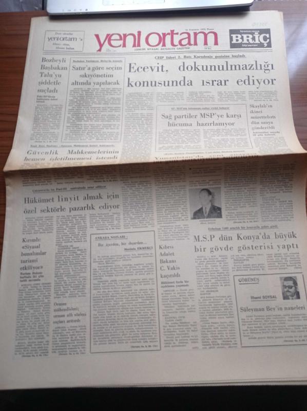Yeni Ortam Gazetesi - 29 Temmuz 1973 - İstanbul Fuarının Temeli Dün Atıldı - Kemal Bisalman - Tektaş Ağaoğlu - Oya Baydar - Fakir Baykurt Köygöçüren Romanı - Niyazi Altunya - Hayati Asılyazıcı - Vecihi Timuroğlu - İlhami Soysal - Mustafa Ekmekçi - Bülent Ecevit Dokunulmazlığı Konusunda Israr Ediyor - Demokrat Parti Genel Başkanı Ferruh Bozbeyli - Başbakan Yardımcısı Kemal Satır - Milli Selamet Partisi adlı eser Türkçe dilindedir.