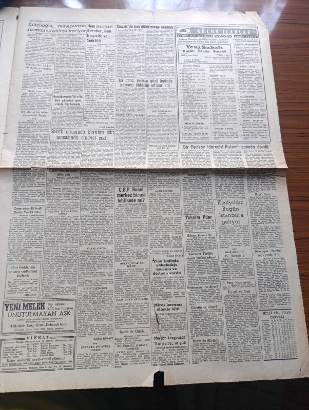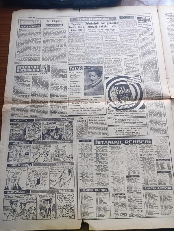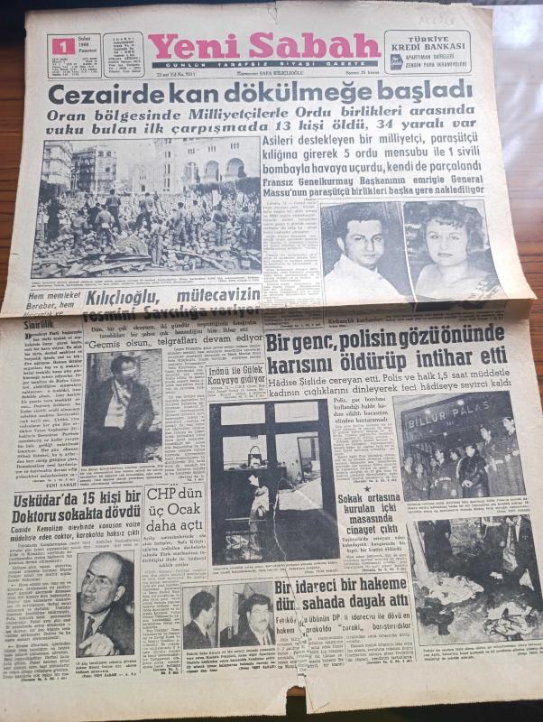 Yeni Sabah Gazetesi - 1 Şubat 1960 - Cezayirde Kan Dökülmeye Başladı - Oran Bölgesinde Milliyetçilerle Ordu Birlikleri Arasında Vuku Bulan İlk Çarpışmada 13 kişi Öldü 34 Yaralı Var - Otomobilinden Çıkarken Saldırıya Uğrayan Safa Kılıçlıoğlu Saldıranların Resmini Savcılığa Veriyor - İsmet İnönü ile Kasım Gülek Konya'ya Gidiyor - Bir İdareci Hakem Baha Kırçılı Dün Sahada Dövdü - Bir Genç Polisin Gözü Önünde Karısını Öldürüp İntihar Etti - Sabah Penceresinden Bazı Kitaplar Yazan Siyavuşgil - Saltanat Rüzgarları Yazan Sevda Sezer Yazı Dizisi - Judd Saxon Çizen Ken Bald - Hasbi Tembeller Çizen Mort Walker - Cafer İletişim Hürmüz Çizen Altan Erbulak - Hayk Mammer Çizen Oğuz Aral - Kızılyıldız Bugün İstanbul'a Geliyor - Fenerbahçe'nin Rakibini 3 2 Yendiği Maçın Sonunda Bir Feriköy İdarecisi Hakemi Sahada Dövdü Fotoğraflar - Hakem İdareci İle Barıştı - Galatasaray - İstanbulspor Kasımpaşa'yı Rahat Mağlup Etti adlı eser, Kitap > Süreli Yayınlar > Gazeteler > Türkiye > Genel > Günlük kategorisinde İkinci El olarak satıştadır.