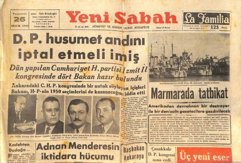 Yeni Sabah Gazetesi 26 Aralık 1949 - Adnan Menderes'in İktidara Hücumu - Barışa Hasret Müslüman Şehir: Kudüs GZ146802, en son 20 saat önce güncellenmiştir.