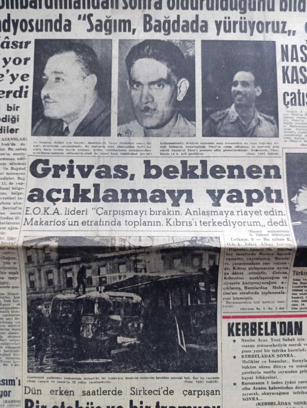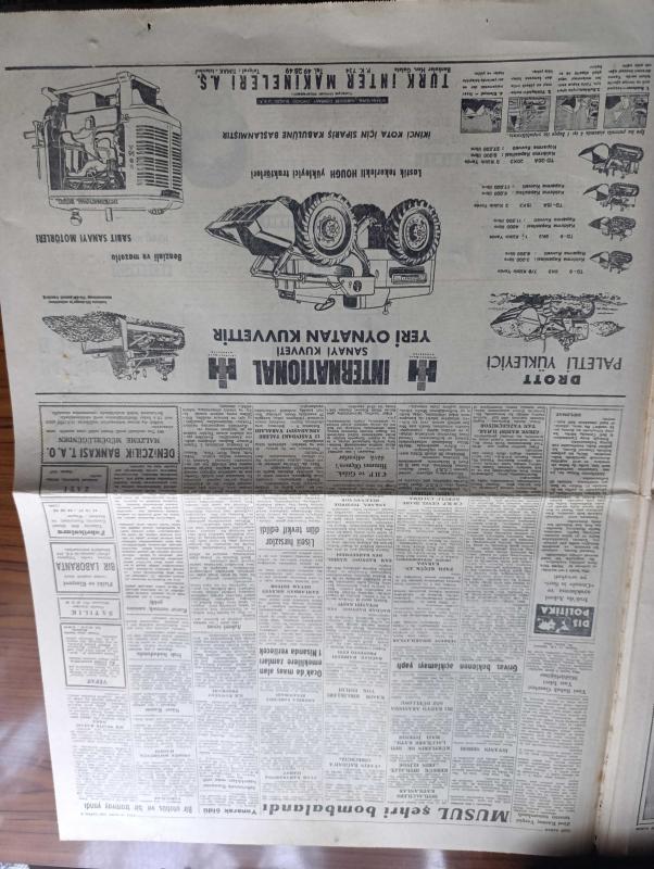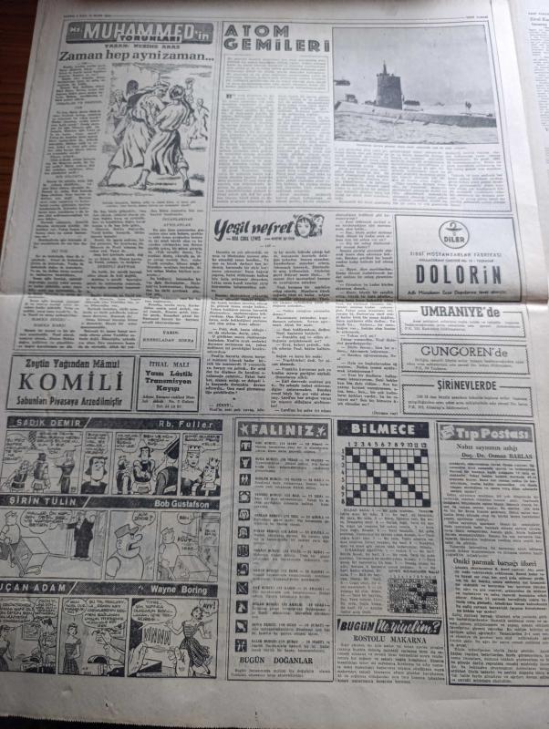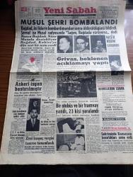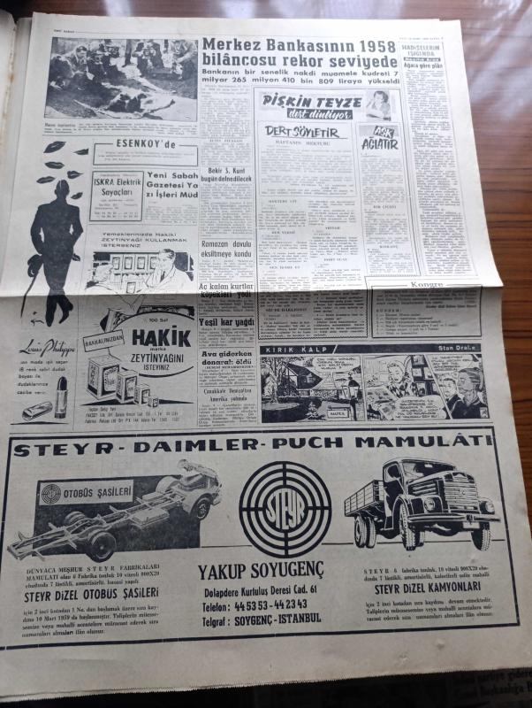 Yeni Sabah Gazetesi - Turkish Newspaper - 10 Mart 1959 - Musul şehri bombalandı - Bağdat Asi lider Abdülvehab Sevvaf'ın bombardıman'dan sonra öldürüldüğünü bildirdi fotoğraf - Nasır Kasım Çatışması - Irak ateşemiliterine göre isyan bastırılmıştır - Grivas beklenen açıklamayı yaptı - İngiliz yıldızı Marlen Roscoe Türkiye'de film çevirecek - Sirkeci'de çarpışan bir otobüs ve bir tramvay yandı 23 kişi yaralandı fotoğraf - Irak'taki Asi lider Abdülvehab Sevvaf bir Kürt kabilesine mensup - Restore edileren Eyüp Sultan camii Başvekil Adnan Menderes'in de bulunacağı bir merasimle ibadet açılacak - Cafer ile Hürmüz karikatür çizen Altan Erbulak - Hayk Hammer çizen Oğuz Aral - Merkez bankası'nın 1958 bilançosu rekor seviyede - hazreti Muhammed'in torunları yazan Nezihe Araz Yazı Dizisi - Komili sabunları - Galatasaray Turgay Şeren'in bonservisini 60.000 olarak belirledi - Galatasaraylı Candemir sakatlığından dolayı kenarda arkadaşlarını izledi fotoğraf - Milli Takım kadrosu adlı eser, Kitap > Süreli Yayınlar > Gazeteler > Türkiye > Genel > Günlük kategorisinde İkinci El olarak satıştadır.