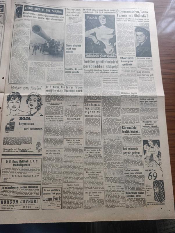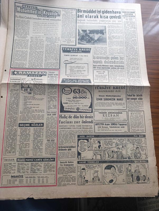 Yeni Sabah Gazetesi - Turkish Newspaper - 10 Nisan 1958 - Doktor Fazıl Küçük Vali Foot'un Türklere verdiği her sözün iflas ettiğini bildirdi - bir aslan davetsiz misafiri parçaladı fotoğraf - Müslüman olan Alman alimi Nurettin Steinhorst hendek'te Fotoğrafı - Vezneciler Şehzadebaşı ve saraçhaneyi birbirine bağlayan caddenin genişletilmesi fotoğraf - Mecidiyeköy'ünde bir esrar tekkesi basıldı fotoğraf - Katil Lana Turner Fotoğrafı - modern bir yolcu salonu için galata'daki Çinili Han ile denizcilik Bankası arasındaki binalar yıkılacak - Mimar Sinan'ın 370. Ölüm yıldönümü anması için Ankara'da tören - İstanbul sinema tiyatro programı - hazreti Muhammed'in köyünde yazan Nezihe Araz Yazı Dizisi - Ramazan köşesi - Kezban Taksim sinemasında - Grace Kelly ve Rainier bir kız çocuk daha istiyorlar fotoğraf - Hayk Hammer çizen Oğuz Aral - Cafer ile Hürmüz karikatür çizen Altan Erbulak - genç takımımız Romanya ile 0 0 berabere kalarak elendi - Fenerbahçe Blau Weiss'la 20 Nisan'da karşılaşacak adlı eser, Kitap > Süreli Yayınlar > Gazeteler > Türkiye > Genel > Günlük kategorisinde İkinci El olarak satıştadır.
