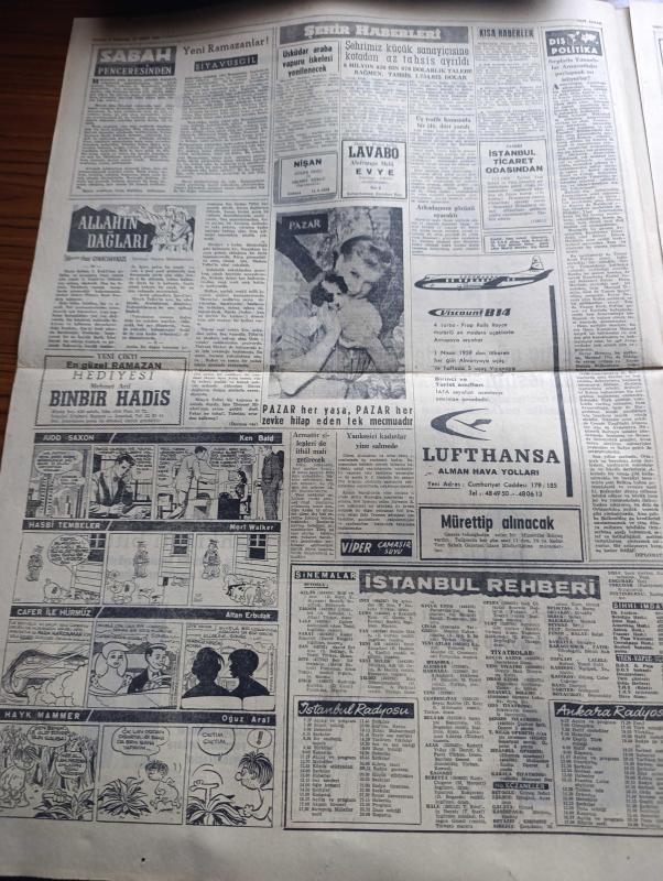 Yeni Sabah Gazetesi - Turkish Newspaper - 12 Mart 1959 - Irak'ta 60 subay idam olundu - Irak başvekili Abdülkerim Kasım karışıklıkların ilk günü Bağdat'ta Raşit caddesi'ni dolduran halka hitap ederken fotoğraf - Şişli Nihat bey apartmanında sosyetenin devam ettiği kumarhane basıldı - Yılın en çok satılan volare plağı fotoğraf - E.O.K.A üç gün içinde silahlarını teslim edecek - Kıbrıs'a vapur seferleri başladı - Vali Ethem Yetkiner Ekrem Özden'in iddialarına cevap verdi - CHP'yi dine hürmetsizlikle itham eden rapor - Ulvi Yenal Türk Hava Yolları idare Meclisi reisi olacak - Cafer ile Hürmüz karikatür çizen Altan Erbulak - Hayk Hammer çizen Oğuz Aral - sinema tiyatro programı - kerbela'dan sonra yazan Nezihe Araz Yazı Dizisi - 1959 Modeli Rambler Hudson - Vefa Galatasaray'a yenilmeyerek Grup liderliğini muhafaza etti fotoğraflar - İstanbulspor ilk galibiyeti Beykoz'dan aldı - arjantin'den telgraf bekleyen Turgay Şeren kulübünün tutumundan şikayetçi - Remondini milli takım antrenörü oldu adlı eser, Kitap > Süreli Yayınlar > Gazeteler > Türkiye > Genel > Günlük kategorisinde İkinci El olarak satıştadır.