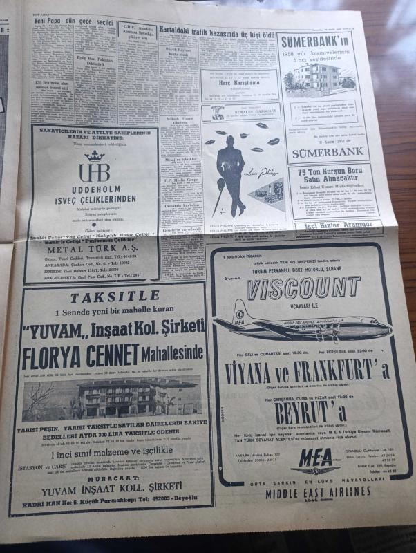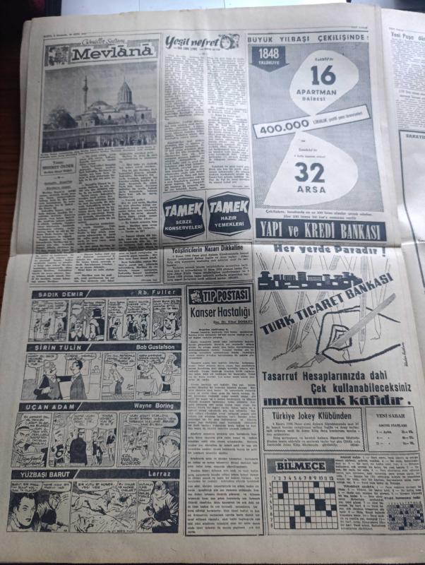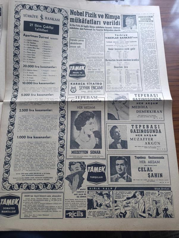 Yeni Sabah Gazetesi - Turkish Newspaper - 29 Ekim 1958 - Cumhuriyet Bayramı kutlu olsun - Cumhuriyet Bayramı sebebiyle yurtta büyük törenler yapılıyor - gençliğin yayınladığı bültenler - Cumhuriyet Bayramı sebebiyle mesaj ve tebrikler - Orgeneral İsmail Hakkı Tunaboylu'yu dün toprağa verdik Fotoğrafı - Eyüp Han Pakistan diktatörü - Rotary Kulübünde cumhuriyet günü fotoğraf - Ahçısı da De Gaulle'e oy vermemiş - CHP Anadolu ajansını savcılığa şikayet ediyor - Sivas'ta il basın bürosu kuruldu - Yeni Papa dün gece seçildi - Cafer ile Hürmüz karikatür çizen Altan Erbulak - Hayk Hammer çizen Oğuz Aral - Müzeyyen Senar Mediha Demirkıran Muzaffer Akgün Celal Şahin Tepebaşı gazinosu'nda - Nobel edebiyat mükafatını alan Rus Yazar Pasternak Rus yazarlar birliğinden çıkarıldı - Şeyhin Encamı Karaca tiyatrosunda - gönüller sultanı Mevlana yazan Mehmet Önder Yazı Dizisi - mithatpaşa'da dörtlü turnuva Galatasaray Adalet Spartak Vefa maçı - milli takımımız dün gece Bükreş'e vardı -Beşiktaş Real Madrid adlı eser, Kitap > Süreli Yayınlar > Gazeteler > Türkiye > Genel > Günlük kategorisinde İkinci El olarak satıştadır.