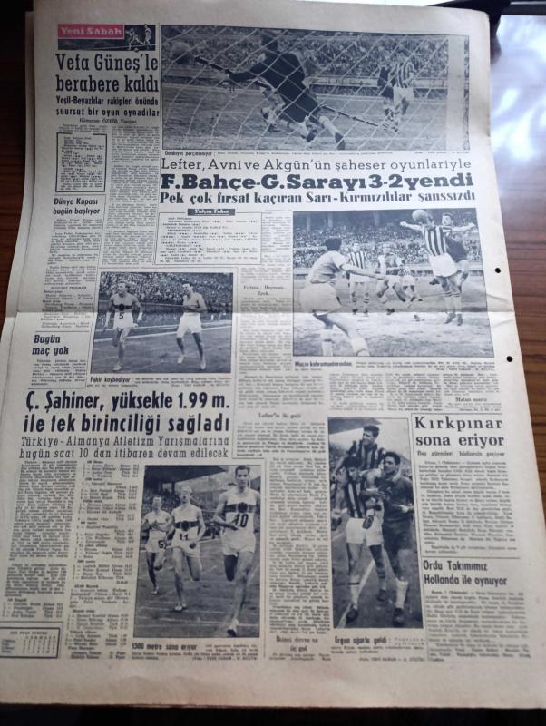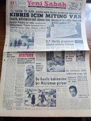 Yeni Sabah Gazetesi - Turkish Newspaper - 8 Haziran 1958 - ya Taksim ya Ölüm parolası bugün Beyazıt meydanında tekrarlanacak - Kıbrıs için miting var - bugün yapılacak Kıbrıs mitingi için gençlik Dün bütün gün hazırlandı hazırlanan dövizler fotoğraf - Türk milletinin kalemiyle Atatürk - Sirkeci ile Karaköy arasında düşen adanın da yıkım işi tamamlanmak üzere fotoğraf - Hürriyet Partisi bir tebliğ yayınladı - De Gaulle kabinesine bir müslüman giriyor - Cafer ile Hürmüz karikatür çizen Altan Erbulak - Hayk Hammer çizen Oğuz Aral - İpa İstanbul gıda pazarı - Hz Muhammed'in üç aşkı yazan Nezihe Araz Yazı Dizisi - Lana Turner rejisörü ile beraber fotoğraf - yugoslavya'daki Sovyet taraftarları temizleniyor - İtalyan yıldızları Amerika'ya kaçıyor fotoğraflar - Kartal yuvası yazan Zuhal Madenci Yazı Dizisi - Camel Süperlux boya - Fenerbahçe Galatasaray'ı 3 2 yendi - maçın kahramanlarından Avni Kalkavan fotoğraf - Kırkpınar sona eriyor - Çetin Şahiner yüksekte 1.99 metre ile tek birinciliği, Safa Kılıçlıoğlu tarafından kaleme alınmıştır. Yeni Sabah Gazetesi - Turkish Newspaper - 8 Haziran 1958 - ya Taksim ya Ölüm parolası bugün Beyazıt meydanında tekrarlanacak - Kıbrıs için miting var - bugün yapılacak Kıbrıs mitingi için gençlik Dün bütün gün hazırlandı hazırlanan dövizler fotoğraf - Türk milletinin kalemiyle Atatürk - Sirkeci ile Karaköy arasında düşen adanın da yıkım işi tamamlanmak üzere fotoğraf - Hürriyet Partisi bir tebliğ yayınladı - De Gaulle kabinesine bir müslüman giriyor - Cafer ile Hürmüz karikatür çizen Altan Erbulak - Hayk Hammer çizen Oğuz Aral - İpa İstanbul gıda pazarı - Hz Muhammed'in üç aşkı yazan Nezihe Araz Yazı Dizisi - Lana Turner rejisörü ile beraber fotoğraf - yugoslavya'daki Sovyet taraftarları temizleniyor - İtalyan yıldızları Amerika'ya kaçıyor fotoğraflar - Kartal yuvası yazan Zuhal Madenci Yazı Dizisi - Camel Süperlux boya - Fenerbahçe Galatasaray'ı 3 2 yendi - maçın kahramanlarından Avni Kalkavan fotoğraf - Kırkpınar sona eriyor - Çetin Şahiner yüksekte 1.99 metre ile tek birinciliği adlı eser Türkçe dilindedir.