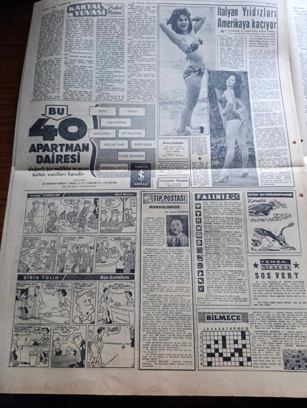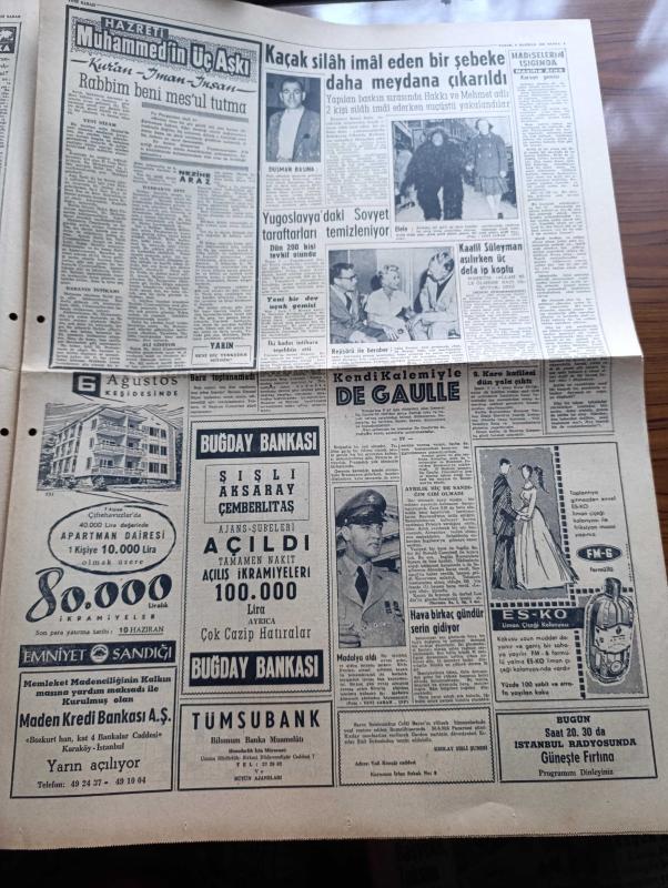 Yeni Sabah Gazetesi - Turkish Newspaper - 8 Haziran 1958 - ya Taksim ya Ölüm parolası bugün Beyazıt meydanında tekrarlanacak - Kıbrıs için miting var - bugün yapılacak Kıbrıs mitingi için gençlik Dün bütün gün hazırlandı hazırlanan dövizler fotoğraf - Türk milletinin kalemiyle Atatürk - Sirkeci ile Karaköy arasında düşen adanın da yıkım işi tamamlanmak üzere fotoğraf - Hürriyet Partisi bir tebliğ yayınladı - De Gaulle kabinesine bir müslüman giriyor - Cafer ile Hürmüz karikatür çizen Altan Erbulak - Hayk Hammer çizen Oğuz Aral - İpa İstanbul gıda pazarı - Hz Muhammed'in üç aşkı yazan Nezihe Araz Yazı Dizisi - Lana Turner rejisörü ile beraber fotoğraf - yugoslavya'daki Sovyet taraftarları temizleniyor - İtalyan yıldızları Amerika'ya kaçıyor fotoğraflar - Kartal yuvası yazan Zuhal Madenci Yazı Dizisi - Camel Süperlux boya - Fenerbahçe Galatasaray'ı 3 2 yendi - maçın kahramanlarından Avni Kalkavan fotoğraf - Kırkpınar sona eriyor - Çetin Şahiner yüksekte 1.99 metre ile tek birinciliği adlı eser, Kitap > Süreli Yayınlar > Gazeteler > Türkiye > Genel > Günlük kategorisinde İkinci El olarak satıştadır.