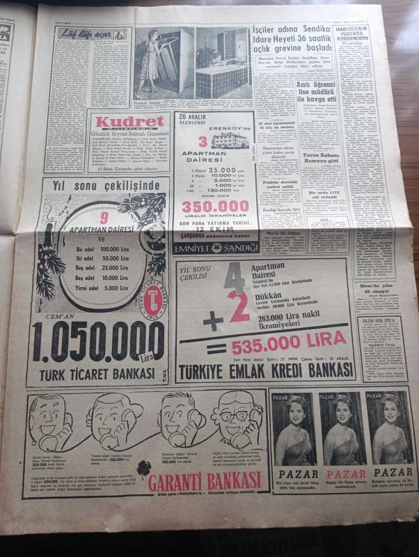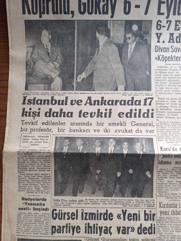 Yeni Sabah Gazetesi - Turkish Newspaper - 9 Ekim 1960 - Fuat Köprülü Fahrettin Kerim Gökay 6-7 Eylül'ü tertipten sanık - 6-7 Eylül ile ilgili kararname Yüksek Adalet divanına verildi - Divan savcıları ve Alparslan Türkeş İstanbul'a geldi - Başsavcı köpekten sonra bebek davası görülecek dedi - İstanbul ve Ankara'da 17 kişi daha Tevkif edildi - Sıtkı Ulay bir izahat aldı fotoğraf - Amerika'da iki rakip Nixon ve Kennedy karşı karşıya fotoğraf - Cemal Gürsel İzmir'de yeni bir partiye ihtiyaç var dedi - Salacak Davası karara kaldı - Lütfi Kırdarla ilgili yeni ihbarlar - İstanbul Sinema Tiyatro programı - Sakıtların İçyüzü Yazan Nimet Arzık Yazı Dizisi - Cafer ile Hürmüz karikatür çizen Altan Erbulak - Hayk Hammer çizen Oğuz Aral - işçiler adına sendika idare heyeti 36 saatlik açlık grevine başladı - çılgın dünya piyesi Kani Kıpçak Sibel Göksel Ve Feridun Karakaya fotoğraf - Şirin Devrim Abdurrahman Palay ve Mehmet Karaca Shakespeare'in hırçın kızı'nda Fotoğrafı - Beşiktaş Galip geldi adlı eser, Kitap > Süreli Yayınlar > Gazeteler > Türkiye > Genel > Günlük kategorisinde İkinci El olarak satıştadır.