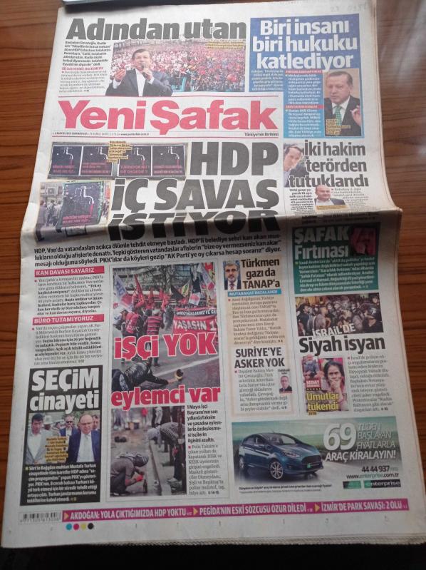 Yeni Şafak Gazetesi - 2 Mayıs 2015 - Şampiyon Takımların Kupasında Selçuklu Yıldızı - Ersun Yanal - İsmail Kartal - Recep Tayyip Erdoğan Paralel Yapı İle Bölücü Terör Örgütü El Ele Yeni Planlar Peşinde - 1 Mayıs'ta İşçi Yok Eylemci Var - HDP İç Savaş İstiyor - Yalçın Akdoğan Yola Çıktığımızda HDP Yoktu - Türkmen Gazı Da TANAP'a adlı eser Türkçe dilindedir.