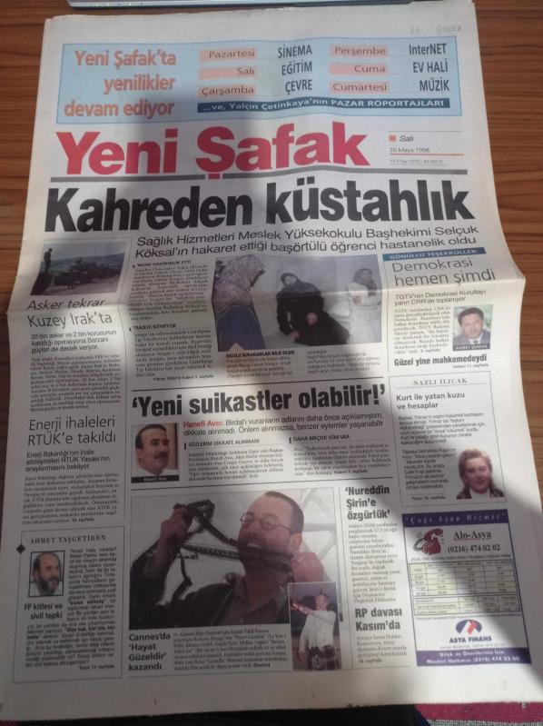 Yeni Şafak Gazetesi - 26 Mayıs 1998 - Abdullah Ercan - Fatih Terim - Tugay Kerimoğlu - Dünya Kupasına Doğru Hazırlıklar - İstanbul Büyükşehir Belediye Başkanı Recep Tayyip Erdoğan Siirt'te Yaptığı Konuşmadan Dolayı Cezalandırılmak İsteniyor - Filistin Kurtuluş Örgütü'nün Silahları PKK'da - Cannes'da Hayat Güzeldir Kazandı - Akın Birdal Suikastı - Hanefi Avcı Yeni Suikastler Olabilir - Sağlık Hizmetleri Meslek Yüksekokulu Başhekimi Selçuk Köksal'ın Hakaret Ettiği Başörtülü Öğrenci Hastanelik Oldu adlı eser Türkçe dilindedir.