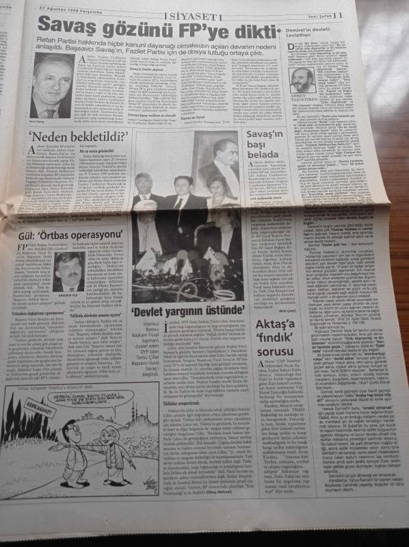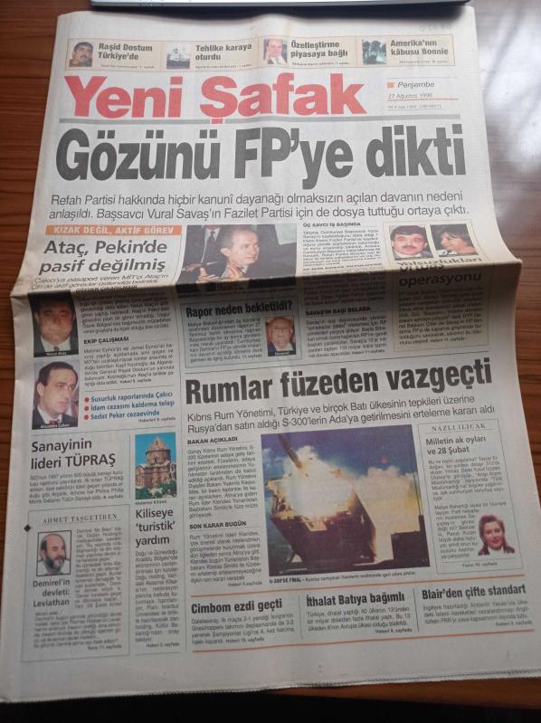 Yeni Şafak Gazetesi - 27 Ağustos 1998 - Ahmet Taşgetiren - Nazlı Ilıcak - Recep Tayyip Erdoğan Yaptıklarımız Bazılarını Çıldırttı - İşbitirici Sedat Peker Cezaevinde - Balkan Şampiyonu Bisikletçimiz Erdinç Doğan - Fenerbahçe Başkanı Aziz Yıldırım UEFA'da Zirveye Oynanacağız : Başsavcı Vural Savaş Gözünü Fazilet Partisi'ne Dikti - Alaattin Çakıcı'ya Pasaport Veren MİT'çi Yavuz Ataç'ın Çin'de Aktif Görevler Üstlendiği Belirtildi - Abdullah Gül - Tansu Çiller - Rumlar S 300'den Vazgeçti adlı eser Türkçe dilindedir.