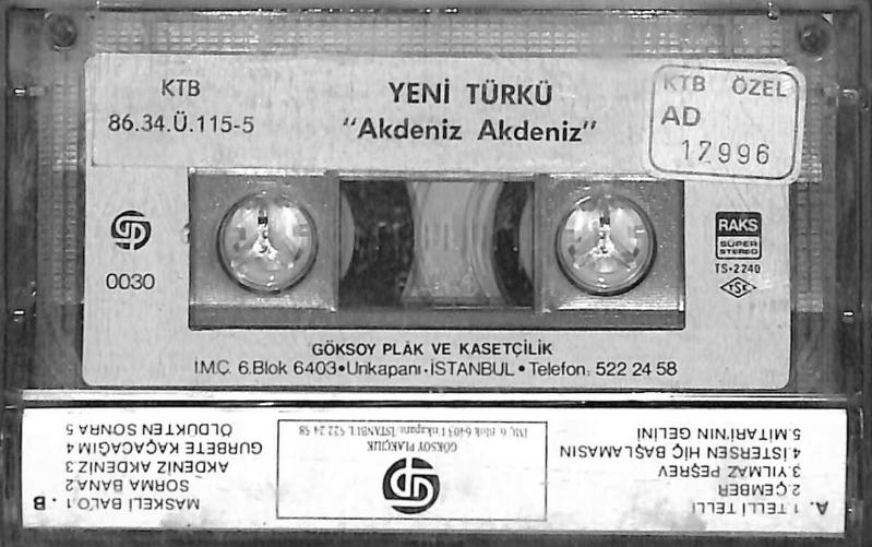 Yeni Türkü - Akdeniz Akdeniz Kaset (İkinci El Kaset) KST29055, en son 19 gün önce güncellenmiştir.