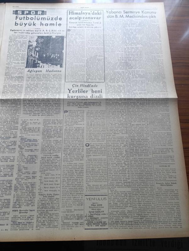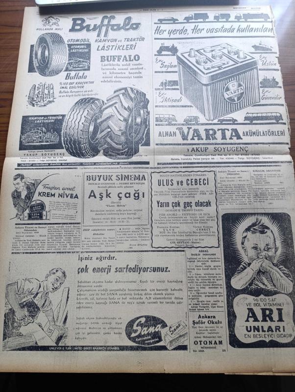 Yeni Ulus Gazetesi - 19 Ocak 1954 - Hüseyin Cahit Yalçın Köşe Yazısı - Yabancı Sermaye Kanunu Dün Büyük Millet Meclisi'nde Kabul Edildi - Cumhurbaşkanı Celal Bayar İngiltere'de - Mısır Hadisesi Hakkında CHP Gensoru Önergesi Verdi - İstanbul Üniversitesi Anayasa Profesörü Hüseyin Nail Kubalı Müsadere kanununu Tenkid Ediyor - İtalya'da Yeni Kabine Kuruldu - Eskimolar Çeviren Rahşan Ecevit Yazı Dizisi - Elen Dünyası Yazan Selahattin Batu - Marangoz Derneği Kongresi - Unesco Merkezini Ziyaret - Atatürk Lisesi Kültür Kolunun Şiir Günü - Kemal Zeki Gençosman - Kore'de Esirlerin Serbest Bırakılması - Hollywood'un Ünlü Aktörü Eric Von Stroheim 68 Yaşında - Kral Faruk Kendisini Neron'a Benzetiyormuş - Kalay Kralı Don Antenor Patino'nun Kızı Evlenebildi - Futbolumuzda Büyük Hamle - Federasyon On Sekizer Kişilik A B C Milli Takımları Teşkil Edip Çalışmalara Hemen Başlıyor - Himalaya'daki Acayip Canavar - Buffalo Otomobil Kamyon Ve Traktör Lastikleri - Alman Varta Akümülatörleri - Nivea adlı eser, Kitap > Süreli Yayınlar > Gazeteler > Türkiye > Genel > Günlük kategorisinde İkinci El olarak satıştadır.