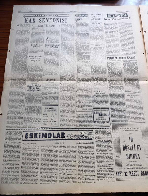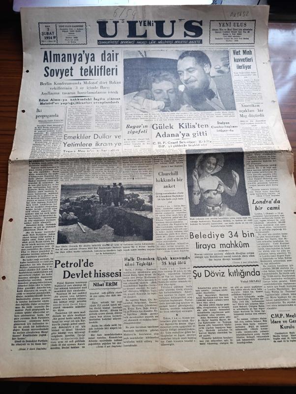Yeni Ulus Gazetesi - 2 Şubat 1954 - İki Propaganda Yazan Hüseyin Cahit Yalçın Köşe Yazısı - Almanya'ya Dair Sovyet Teklifleri - Viet Minh Kuvvetleri İlerliyor - Amerikan Uçakları Bir Mig Düşürdü - CHP Genel Sekreteri Kasım Gülek Kilis'ten Adana'ya Gitti - Petrolde Devlet Hissesi Yazan Nihat Erim Köşe Yazısı - Şu Döviz Kılığında Yazan Vedat Dicleli - Londra'da Bir Cami - Eskimolar Yazan Hans Reusch Yazı Dizisi - Kar Senfonisi Yazan Selahattin Batu Köşe Yazısı - Petrolde Devlet Hissesi - Bir Dil Nasıl Öç Alır Yazan Bülent Ecevit Köşe Yazısı - Sonya Işık Kraliçesi Seçildi - Çerkes Ethem - Pasifik Kahramanları Anlatan Ronald Mckie Yazı Dizisi - Ankara İstanbul Radyosu Programı - Cemiyet Hayatı - Hayatta Muvaffak Olmanın Sırları - Lig Maçlarının İkinci Devresinin Akıbeti Yarın Belli Olacak - Ruslar İsveç Güreşçilerini 27 5 Mağlup Etti - Sabite Tur Gülerman Büyük Sinemada, Nihat Erim tarafından kaleme alınmıştır. Yeni Ulus Gazetesi - 2 Şubat 1954 - İki Propaganda Yazan Hüseyin Cahit Yalçın Köşe Yazısı - Almanya'ya Dair Sovyet Teklifleri - Viet Minh Kuvvetleri İlerliyor - Amerikan Uçakları Bir Mig Düşürdü - CHP Genel Sekreteri Kasım Gülek Kilis'ten Adana'ya Gitti - Petrolde Devlet Hissesi Yazan Nihat Erim Köşe Yazısı - Şu Döviz Kılığında Yazan Vedat Dicleli - Londra'da Bir Cami - Eskimolar Yazan Hans Reusch Yazı Dizisi - Kar Senfonisi Yazan Selahattin Batu Köşe Yazısı - Petrolde Devlet Hissesi - Bir Dil Nasıl Öç Alır Yazan Bülent Ecevit Köşe Yazısı - Sonya Işık Kraliçesi Seçildi - Çerkes Ethem - Pasifik Kahramanları Anlatan Ronald Mckie Yazı Dizisi - Ankara İstanbul Radyosu Programı - Cemiyet Hayatı - Hayatta Muvaffak Olmanın Sırları - Lig Maçlarının İkinci Devresinin Akıbeti Yarın Belli Olacak - Ruslar İsveç Güreşçilerini 27 5 Mağlup Etti - Sabite Tur Gülerman Büyük Sinemada adlı eser Türkçe dilindedir.