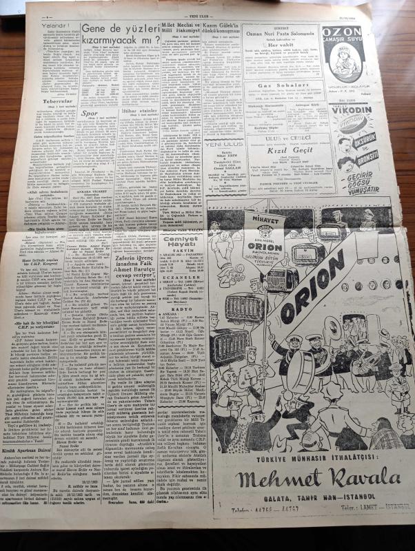 Yeni Ulus Gazetesi - 21 Aralık 1953 - Yabancı Basında CHP'nin Mallarının Alınması Hadisesi - İsmet İnönü Kasım Gülek'le Toplantıda - Zafer Gazetesinin İğrenç İsnadına Faik Ahmet Barutçu Cevap Veriyor - Ankara'da Gençlerbirliği Avusturya'ya 8 2 Mağlup Oldu - Hüseyin Cahit Yalçın - Kore'de Kızılların Esirlere İzahatı - Nihat Erim - Nurullah Ataç Köşe Yazısı - Müthiş Cinayet Katil Nasıl Yakalandı - İki Açıkgöz Katillere Karşı Filmi - Pamuk Prenses Ve Yedi Cüceler Filmi - Kayıplar Adası Çeviren Nuri Özkan Yazı - Pakistan'a Amerikan Yardımı - Güzellik Müsabakalarının İçyüzü Yazı Dizisi - Nivea Krem - Yeni Çıkan Sahibinin Sesi Plakları - Minerva Dikiş Makinesi - Hamiyet Yüceses - Abdullah Yüce - Mustafa Çağlar - Orion Radyoları - Ozon Çamaşır Suyu- Vikodin Tablet adlı eser, Kitap > Süreli Yayınlar > Gazeteler > Türkiye > Genel > Günlük kategorisinde İkinci El olarak satıştadır.