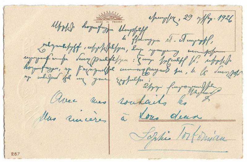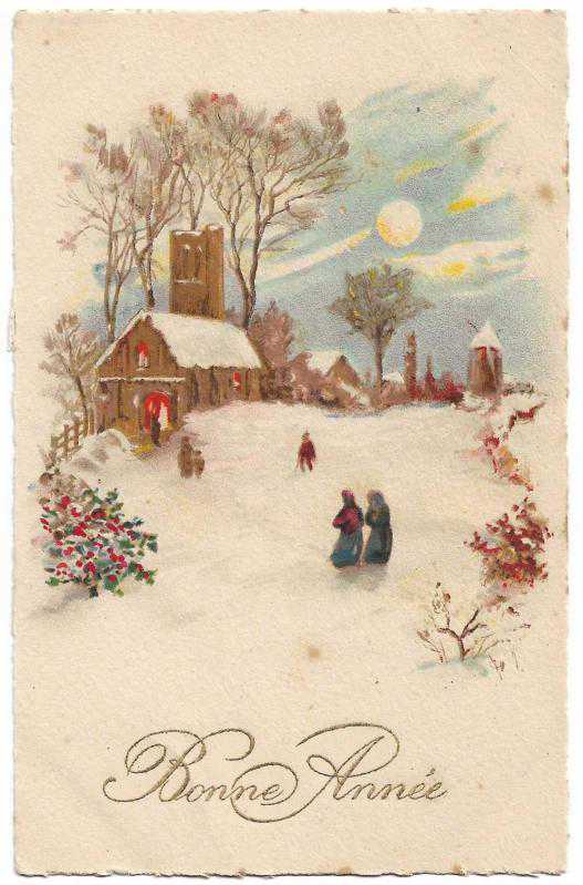 Yeni yıl kartpostalları, Fransızca mutlu yıllar (Bonne Annee) yazılı, arka yüzünde tebrik mesajı var, 1926 tarihli.