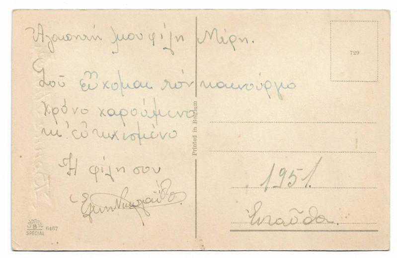 Yeni yıl kartpostalları, Fransızca mutlu yıllar (Bonne Annee) yazılı, arka yüzünde tebrik mesajı var, 1951 tarihli.