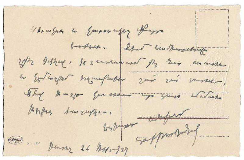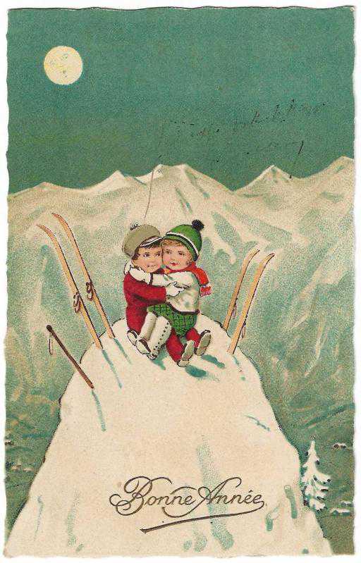Yeni yıl kartpostalları, Fransızca mutlu yıllar (Bonne Annee) yazılı, arka yüzünde tebrik mesajı var.