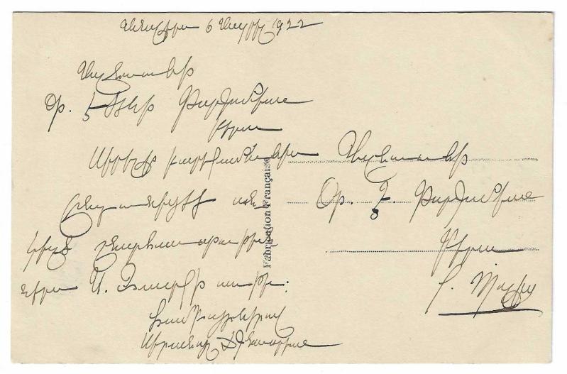 Yeni yıl kartpostalları, Fransızca mutlu yıllar yazılı, arka yüzünde tebrik mesajı var, 1922 tarihli, Constantinople adresli.
