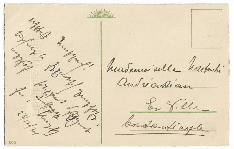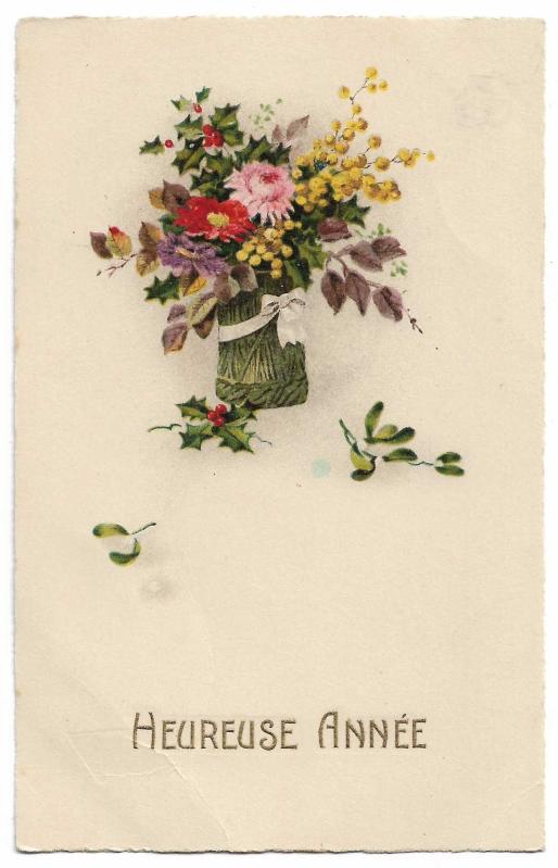 Yeni yıl kartpostalları, Fransızca mutlu yıllar (Heureuse Annee) yazılı, arka yüzünde tebrik mesajı var, 1924 tarihli, Constantinople adresli.