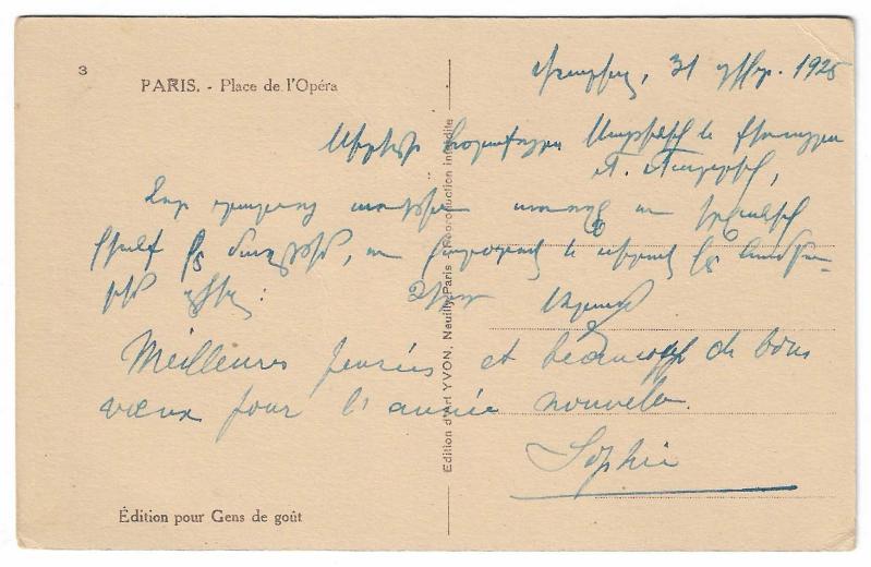 Yeni yıl kartpostalları, Fransızca mutlu yıllar (Heureuse Annee) yazılı, arka yüzünde tebrik mesajı var, 1925 tarihli.