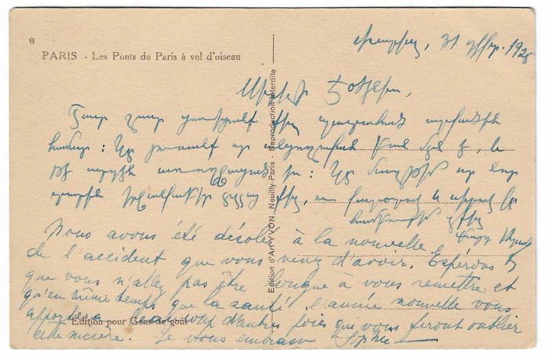 Yeni yıl kartpostalları, Fransızca mutlu yıllar (Heureuse Annee) yazılı, arka yüzünde tebrik mesajı var, 1925 tarihli.