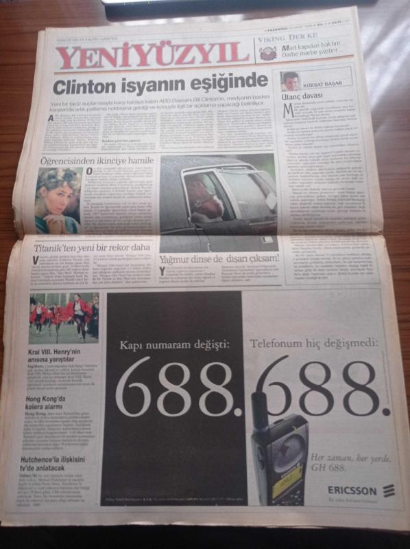 Yeni Yüzyıl Gazetesi - 16 Mart 1998 - Erden Kıral Öfkeli - Murat Göğebakan - Frankofoni Günleri Başlıyor - Bill Clinton İsyanın Eşiğinde - Ordu'dan Sert Tepki - Krizdeki İki Sıcak Nokta Türban Eylemleri Ve Fethullah Gülen - Ermeni Patriği Karekin Kazancıyan Toprağa Verildi - Seksi Siyah Naomi Campbell - Refah Partisi'nden Trilyonluk Vurgun - Hükümlü Kadın Gönül Duman Savcı Necati Özdemir İle Seks Yaptım adlı eser Türkçe dilindedir.
