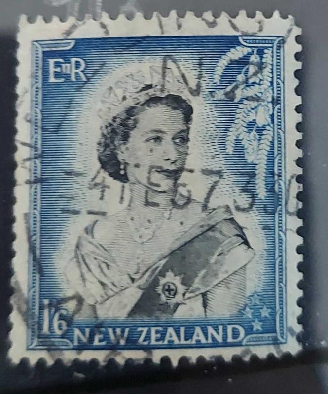 Yeni Zelanda 1953 Kraliçe Elizabeth 1 şilin - damgalı pul, bir saat önce satışa sunulmuştur.
