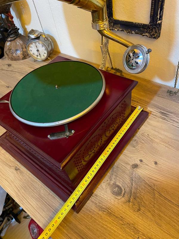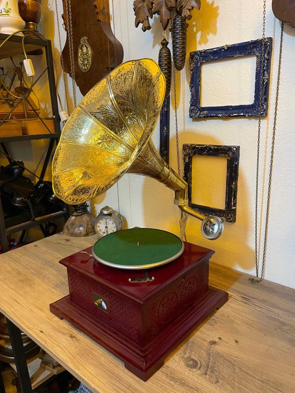 Yeni ahşap kurmalı Gramafon başlıklı antika/koleksiyon objesi Türkiye menşe’lidir. 2000 ve sonrası dönemine aittir.