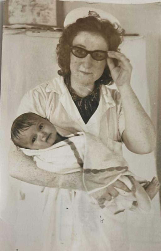 Yeni doğmuş olan bebeği bir havluya sarıp kucağında tutarak poz veren yetişkin bir hemşirenin fotoğrafı.ORJİNAL SİYAH & BEYAZ 17x12cm EBADINDA - 1940'LAR, 1950'LER, 1960'LAR ve 1970'LER, 7 ay önce satışa sunulmuştur.