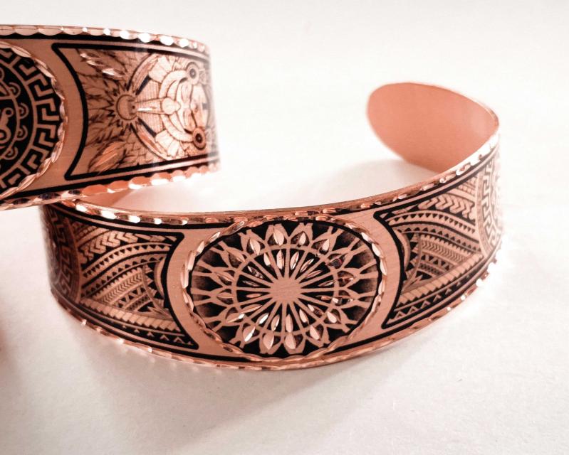 Yeni tasarım Bakır Kelekçe Bilezik , saf bakır bileklik bilezik. Ağzı açık, her bileğe uyar. Kararmaz. Aztek maya inka model 3 farklı model başlıklı antika/koleksiyon objesi Türkiye menşe’lidir. 2000 ve sonrası dönemine aittir.