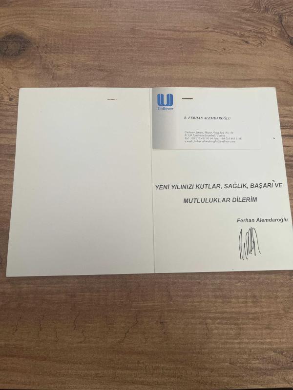 Yeni yıl tebrik kartı unilever sanayi ve ticaret Türk a.ş. kartpostal 15x10ebatında, 6 ay önce satışa sunulmuştur.