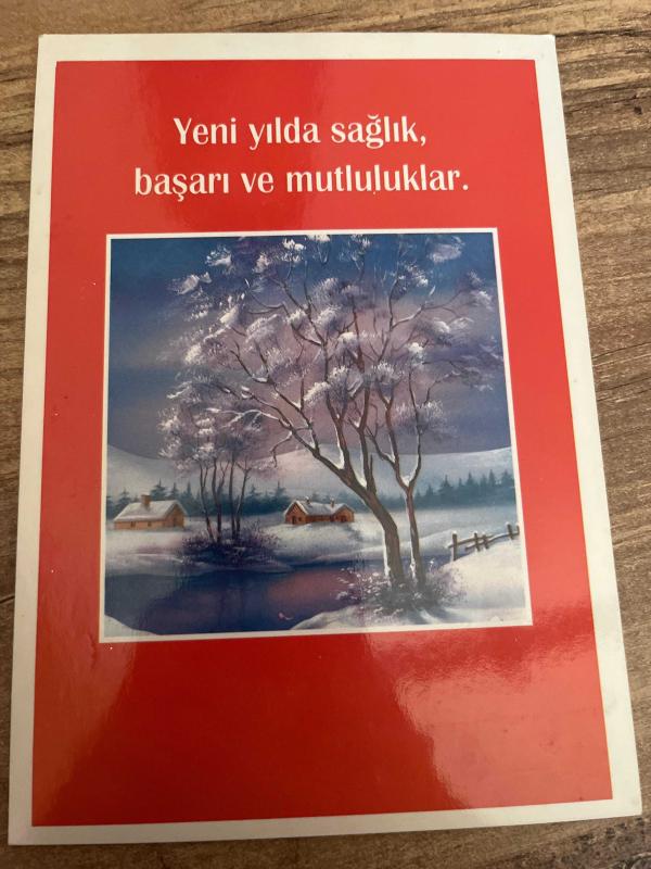 Yeni yıl tepbrik kartı Soykan kâğıt ürünleri ve pazarlama kartpostalı 18x12 ebatında, 7 ay önce satışa sunulmuştur.