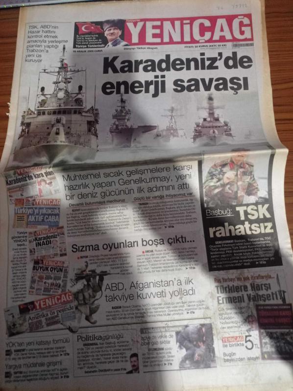 Yeniçağ Gazetesi - 18 Aralık 2009 - Tekel İşçilerine Orantısız Güç - Karadeniz'de Enerji Savaşı - İlker Başbuğ - ABD Afganistan'a İlk Takviye Kuvveti Yolladı - Büyük Ortadoğu Projesi - Sabahattin Önkibar - YÖK'ten Yeni Katsayı Formülü adlı eser Türkçe dilindedir.