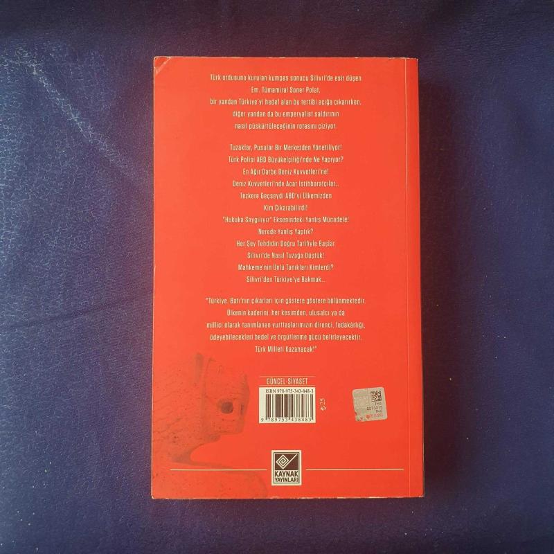 Türk ordusuna kurulan kumpas sonucu Silivri'de esir düşen Em. Tümamiral Soner Polat, bir yandan Türkiye'yi hedef alan bu tertibi açığa çıkarırken, diğer yandan da bu emperyalist saldırının nasıl püskürtüleceğinin rotasını çiziyor. Tuzaklar, Pusular Bir Merkezden Yönetiliyor! Türk Polisi ABD Büyükelçiliği'nde Ne Yapıyor? En Ağır Darbe Deniz Kuvvetleri'ne! Deniz Kuvvetleri'nde Acar İstihbaratçılar… Tezkere Geçseydi ABD'yi Ülkemizden Kim Çıkarabilirdi! "Hukuka Saygılıyız" Eksenindeki Yanlış Mücadele! Nerede Yanlış Yaptık? Her Şey Tehdidin Doğru Tarifiyle Başlar Silivri'de Nasıl Tuzağa Düştük! Mahkeme'nin Ünlü Tanıkları Kimlerdi? Silivri'den Türkiye'ye Bakmak… "Türkiye, Batı'nın çıkarları için göstere göstere bölünmektedir. Ülkenin kaderini, her kesimden, ulusalcı ya da millici olarak tanımlanan yurttaşlarımızın direnci, fedakârlığı, ödeyebilecekleri bedel ve örgütlenme gücü belirleyecektir. Türk Milleti Kazanacak!"