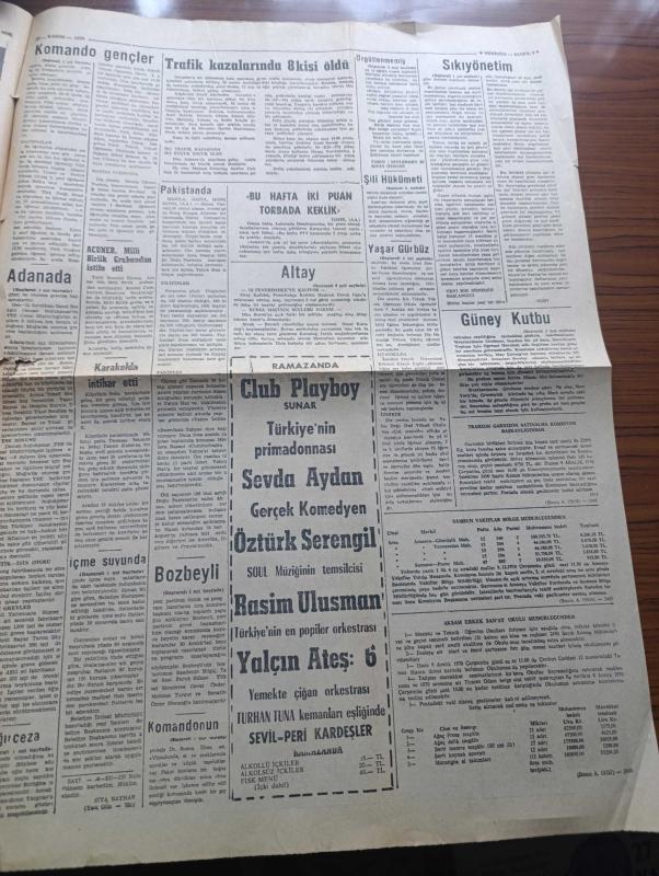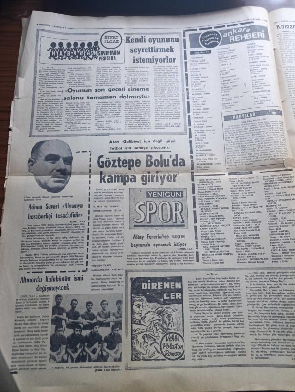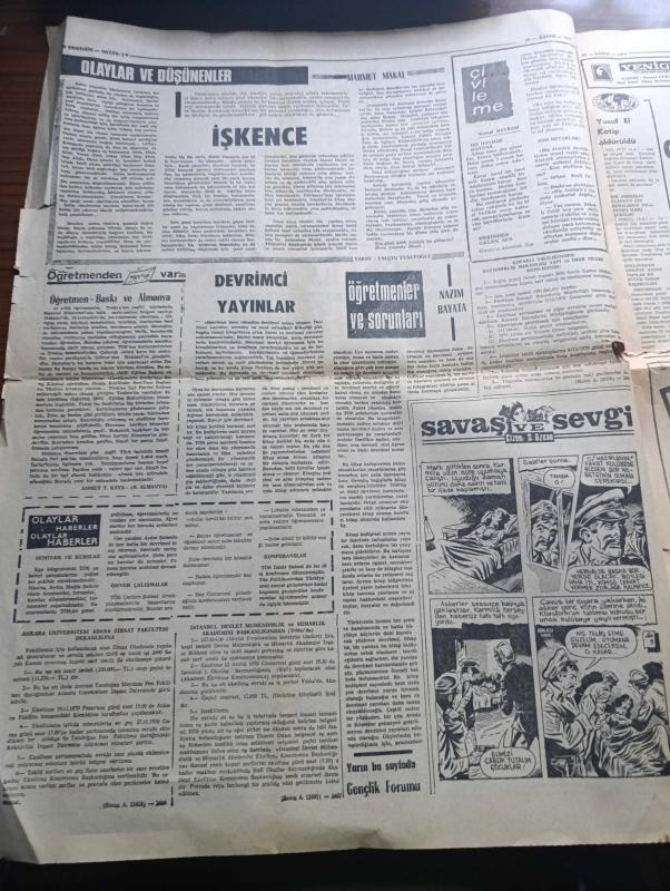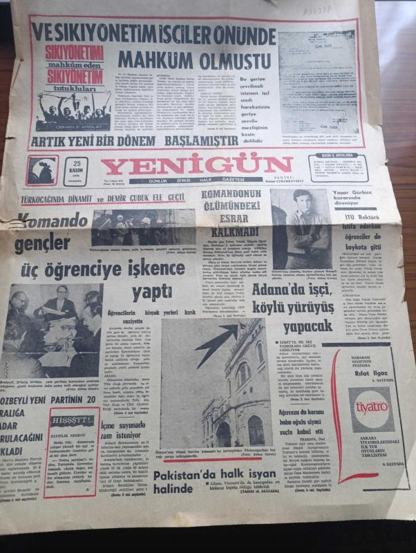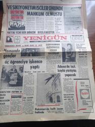 Yenigün Gazetesi - 25 Kasım 1970 - Ve Sıkıyönetim İşçiler Önünde Mahkum Olmuştu - Türkocağında Dinamit Ve Demir Çubuk Ele Geçti - Komando Gençler Üç Öğrenciye İşkence Yaptı - Ferruh Bozbeyli Yeni Parti'nin 20 Aralığa Kadar Kurulacağını Açıkladı - Komando Dursun Özkuzucu'nun Ölümündeki Esrar Kalkmadı - İstanbul Teknik Üniversite Rektörü Kazım Ergün İstifa Ederken Öğrenciler De Boykota Girdi - Adana'da İşçi Köylü Yürüyüş Yapacak - İşkence Yazan Mahmut Makal - Devrimci Yayınlar Yazan Nazım Bayata - Savaş Ve Sevgi Çizen S. Özcan - Gazze Bölgesi Halk Kurtuluş Cephesi Komutanı Yardımcısı Yusuf El Katip Öldürüldü - Şilide İktidara Gelmiş Olan Salvador Allende - Ürün Üretici Ve Kavga Yazan Kemal Yazgan Yazı Dizisi - Hababam Sınıfının Peşisıra Yazan Rıfat Ilgaz Yazı Dizisi - Uzun Zaman Milli Takım Antrenörlüğü Yapmış Olan Adnan Süvari - Altınordu Kulübünün İsmi Değişmeyecek - Altay Fenerbahçe Maçını Bayramda Oynamak İstiyor - Ramazanda Club Playboy Sunar Öztürk Serengil adlı eser, Kitap > Süreli Yayınlar > Gazeteler > Türkiye > Genel > Günlük kategorisinde İkinci El olarak satıştadır.