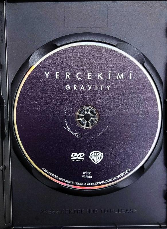 2013 yılında vizyona giren, Sandra Bullock ve George Clooney'in başrolleri paylaştığı bilim-kurgu & uzay filmi Gravity ( Yerçekimi ). Disk test edilmiştir, sorunsuz çalışmaktadır. Oynatmaya engel olmayan ufak çizikler mevcuttur. Türkçe dublaj ve Türkçe altyazı seçenekleri bulunmaktadır. Kutulu DVD film koleksiyonu yapanlar ve filmin hayranları için bulunması zor, nadir ve koleksiyonluk bir üründür.