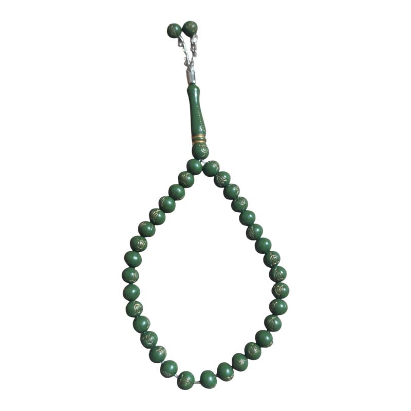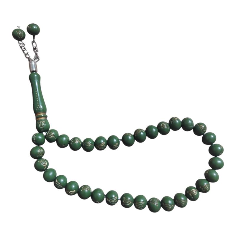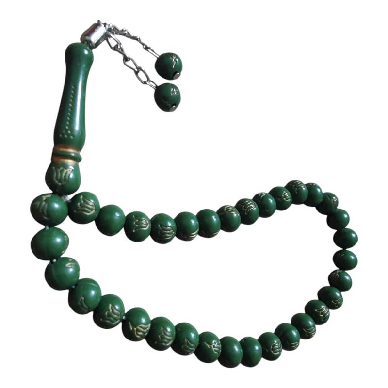 Yeşil Lale İşlemeli Tesbih 33'lük başlıklı antika/koleksiyon objesi Türkiye menşe’lidir. 2000 ve sonrası dönemine aittir.