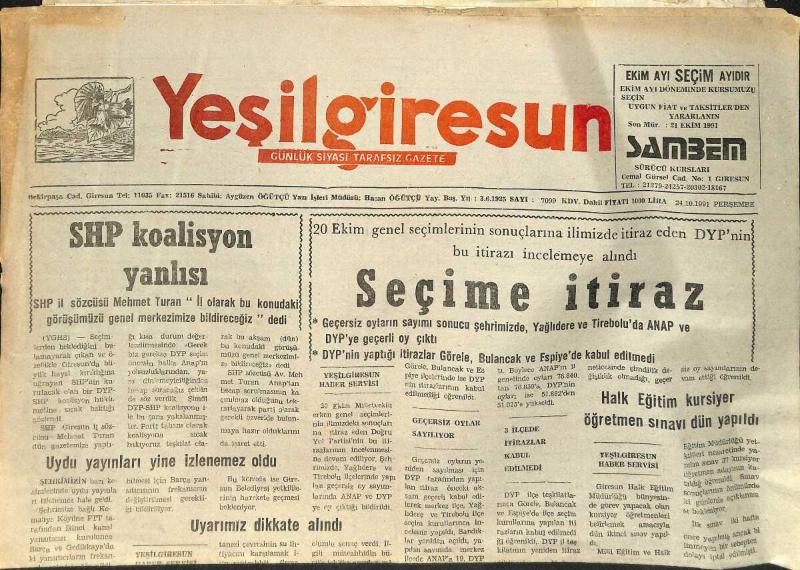 Yeşilgiresun Gazetesi 24 Ekim 1991 - Giresun Cezaevi Müdürü Burhaniye'ye Atandı - Fisko'nun Borcu 202 Milyar GZ2618, en son 21 gün önce güncellenmiştir.