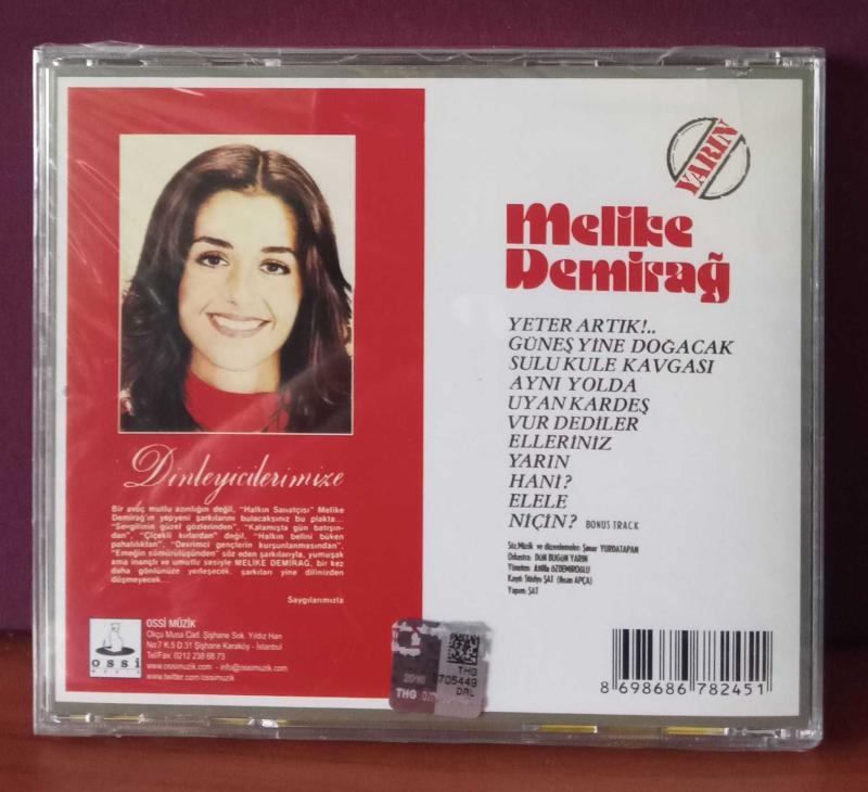 Yeter Artık (CD) Melike Demirağ - Ossi Müzik kullanılmamış yeni CD, orijinal jelatinindedir kargolama pazartesi, çarşamba ve cuma günleridir CD İçeriği 1. Yeter Artık 2. Güneş Yine Doğacak 3. Sulukule Kavgası 4. Aynı Yolda 5. Uyan Kardeş 6. Vur Dediler 7. Elleriniz 8. Yarın 9. Hani 10. Elele 11. Niçin?