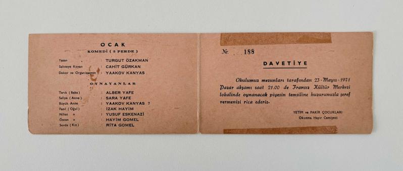 Yetim ve Fakir Çocukları Okutma Hayır Cemiyeti Tiyatro Davetiyesi 1971, en son bir ay önce güncellenmiştir.