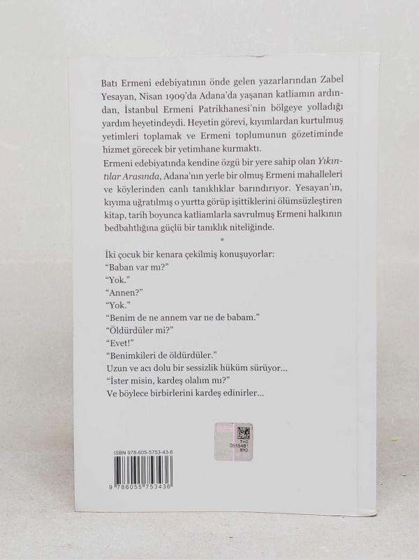 Yıkıntılar Arasında, Zabel Yesayan tarafından kaleme alınmıştır. Kitap 2014 yılında Aras Yayıncılık tarafından [İstanbul] 978-605-5753-43-6 ISBN kodu ile yayınlanmıştır. Bu baskının çevirisi Kayuş Çalıkman Gavrilof tarafından yapılmıştır. 320 sayfadır. Yıkıntılar Arasında adlı eser Türkçe dilindedir.